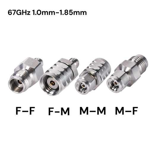 Precision RF and microwave adapters from DC to 110 GHz, offered in straight, right-angle, flange, and bulkhead designs. Available in 0.8 mm, 1.0 mm, 1.85 mm, 2.4 mm, 2.92 mm configurations and more for reliable, low-loss connectivity across wideband applications.